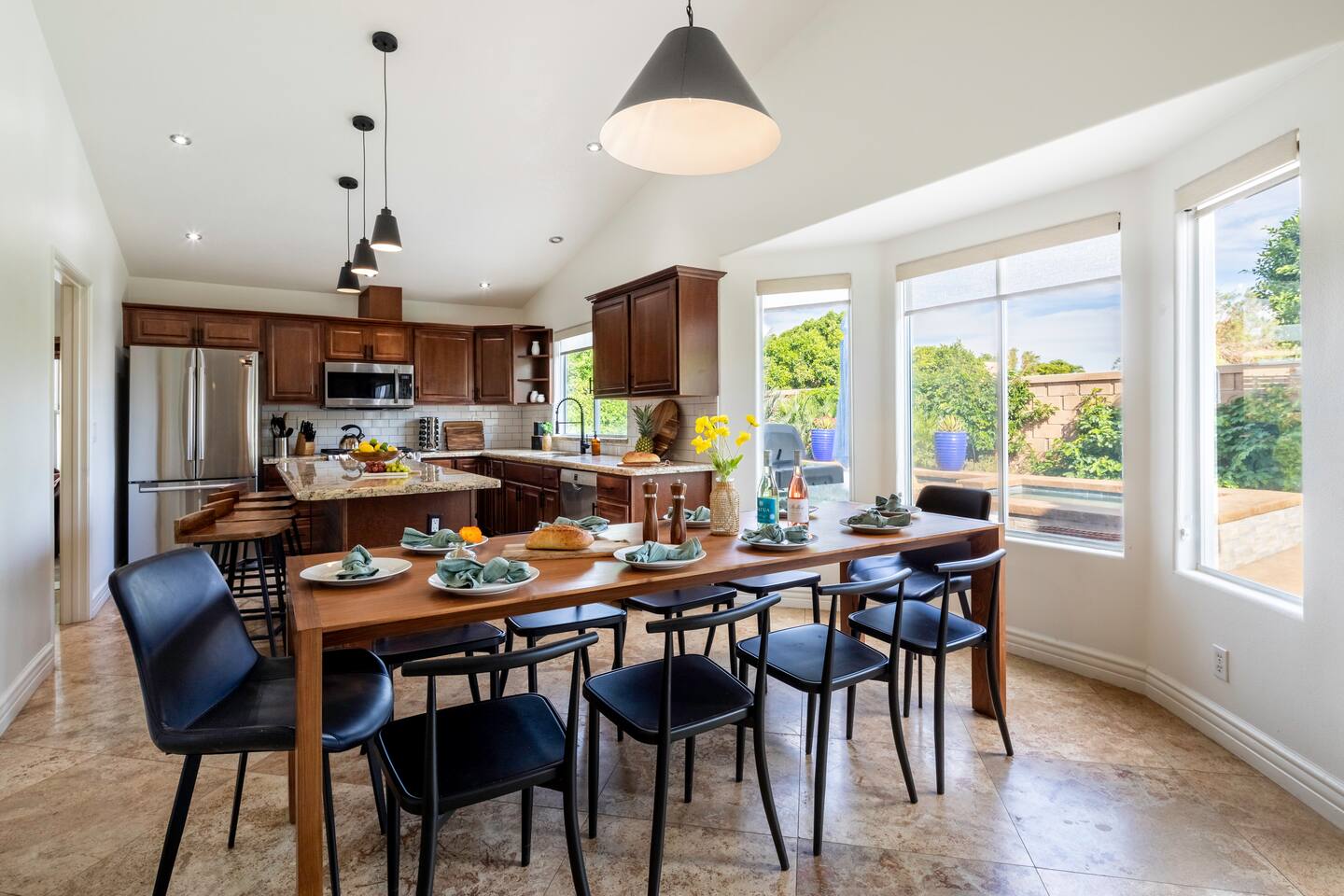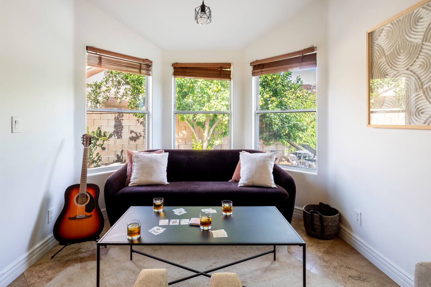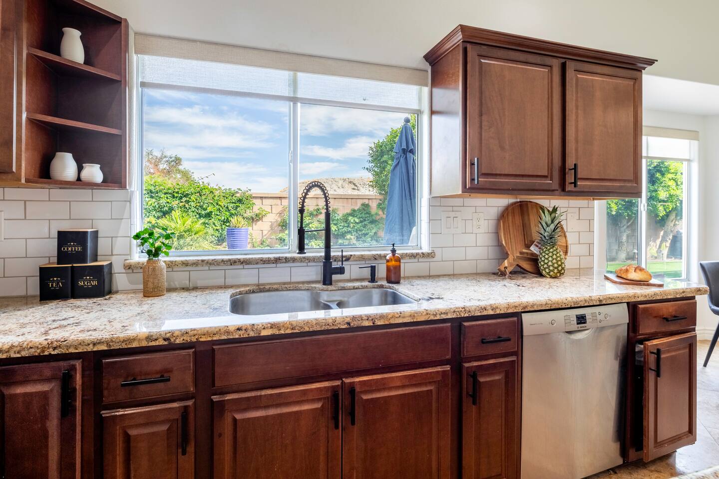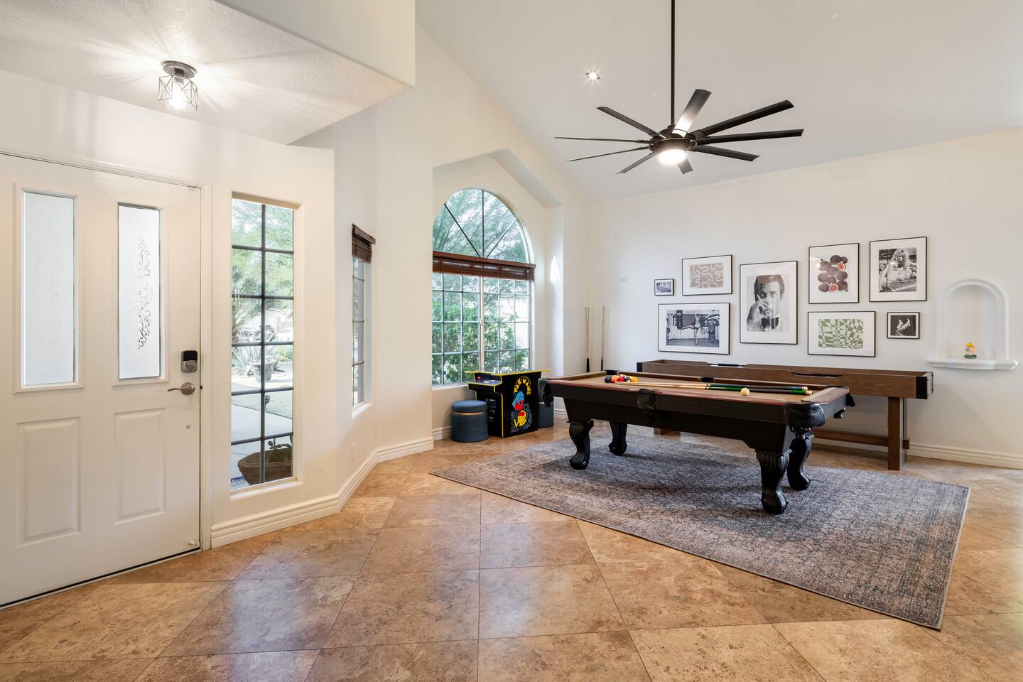 About This Space -Centrally located! A 10-minute drive from Empire Polo Club, Coachella & Stagecoach festival grounds, PGA West, Indian Wells Tennis Garden, Acrisure Arena and many other local event venues - Backyard paradise with a pool, hot tub, giant Connect 4, and mini putting course - Patio with a firepit lounge, al fresco dining area, and plenty of loungers - Sunny game room with billiards, shuffleboard, and a PAC-MAN arcade game - Open layout between the living room (includes a fireplace), dining area, and fully-equipped kitchen - Four comfortable bedrooms (3 with king beds & en-suite bathrooms, 1 room with a queen over queen bunk bed) Nestled in the heart of La Quinta, this stunning group vacation rental home offers a backyard paradise perfect for entertaining and relaxation. As you step outside, you'll be captivated by Casa Palmillo’s expansive outdoor oasis with a large pool and hot tub, perfect for cooling off during the day or soaking during the evenings. You'll also find plenty of loungers to catch some sun, including two resting on a sun shelf, so you can stay cool and comfortable while working on your perfect tan. The large patio includes an al fresco dining area under the pergola, where you can enjoy poolside meals and snacks. Practice your skills on the mini putting green, or gather around the firepit lounge, complete with comfortable outdoor couches, once the sun sets and the backyard transforms into a stunning nighttime escape with ambient lighting and sunsets. Inside, Casa Palmillo features an upscale and airy design with large windows that let in tons of natural light. The main living room includes comfortable seating, a TV, and a fireplace, while an open layout makes it easy to connect throughout the living, dining, and kitchen spaces. The large dining table near the kitchen offers seating for ten, perfect for family dinners or board games. And a fully-equipped kitchen with barstool seating at the large island, modern appliances, and everything you need to cook makes keeping everyone fed a breeze. The sunny game area off the living room offers a pool table, shuffleboard, and PAC-MAN arcade game perfect for kids and gamers of all ages. And with four comfortable bedrooms, three with king beds and ensuite bathrooms, and a fourth with a bunk bed perfect for accommodating children or groups of friends, ensures everyone has a place to relax and call their own at the end of the day. Located right across the street from Rancho La Quinta Golf Course, Casa Palmillo is perfect for golf enthusiasts and festival-goers. It's just a 10-minute drive from Empire Polo Club and the festival grounds, making it an ideal location for those looking to attend live events. You'll also find convenient and healthy grocery shopping options nearby, making it easy to stock up on everything you need for your stay. Located 100 miles east of Los Angeles, Coachella Valley is an oasis for those looking for an escape from the daily grind. Surrounded by picturesque vistas and mountains–as well as an abundance of golf courses, spas, and hiking trails–this desert destination is a must-visit. It's also the location for the nation's most famous music event, the Coachella Music & Arts Festival. No matter what time of year, there's always something exciting going on.